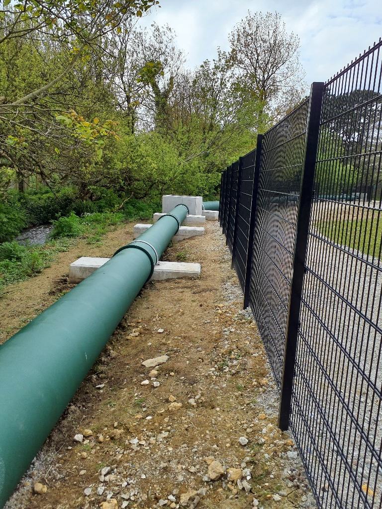 After an extensive review, replacing the pipe in its original location was ruled out due to the environmental disruption and the scale of over-pumping required. Instead, we engineered a bespoke diversion route through the adjacent ‘Savannah Field’ – home to zebras and wildebeest – avoiding the sensitive wildlife pond area entirely.